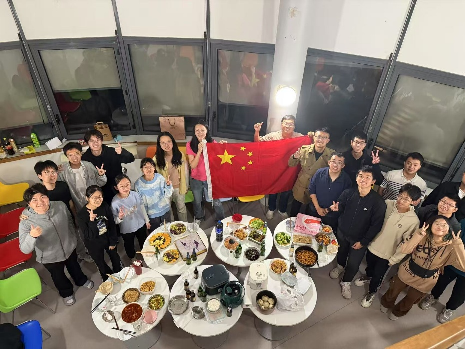 在法国,学业压力与科研任务繁重,但赵旭服务同学的热忱并未消减。他很快融入里昂中央理工大学中国学联的工作中,主动协助联络同学、为有困难同学提供帮助支持,并积极组织跨地区学子的经验交流。他真诚的付出与卓越的组织能力赢得了同学的信赖与认可,在今年学联换届中,他当选为新一届里昂中央理工学联主席。中秋恰逢国庆之际,海外学子思乡情切。作为学联主席,赵旭组织了“金秋厨艺分享大会”,让同学们在美食与欢谈中共度佳节。活动现场笑声不断,大家不仅分享家乡风味,同时交流在法学习与生活的点滴,彼此温暖,共解乡愁。